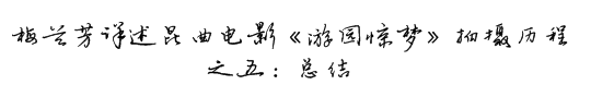 我从少年时起就爱好昆曲,多年来,断断续续的确下过不少工夫, 这次拍戏我用心探讨,虽然有些提高,但在唱法上还是不够完善的,我还像学生般抱着需要学习的心情继续钻硏。