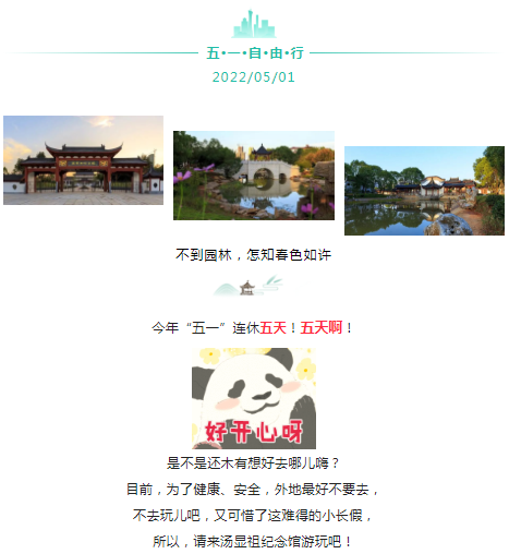 公告 | 抚州市汤显祖纪念馆2022年劳动节假期开放安排